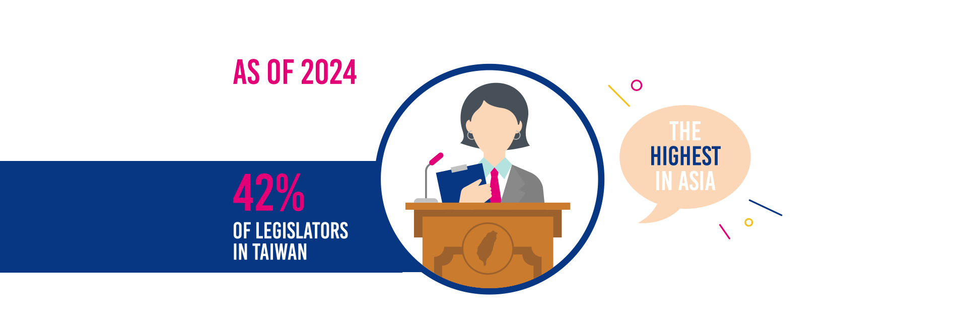 In 2012, Taiwan’s government set up a department to comprehensively promote gender equality and women's rights and interests by the central government.